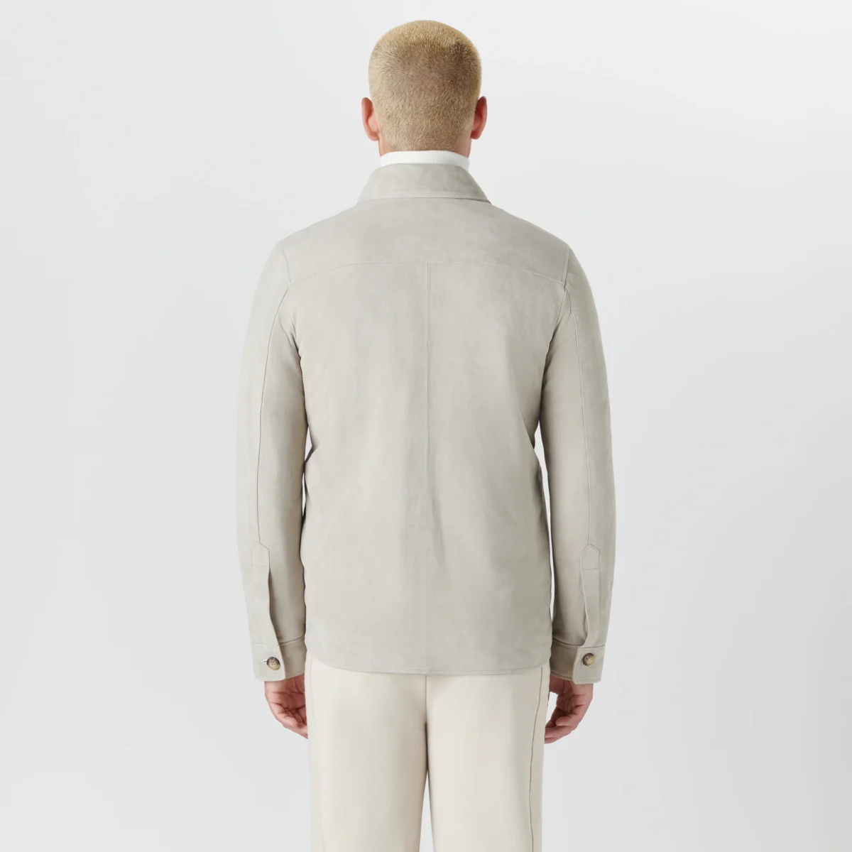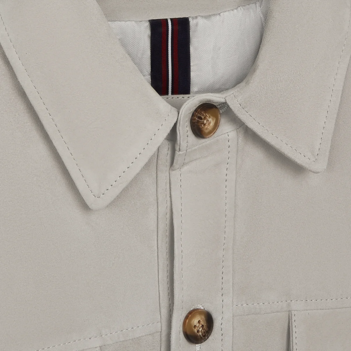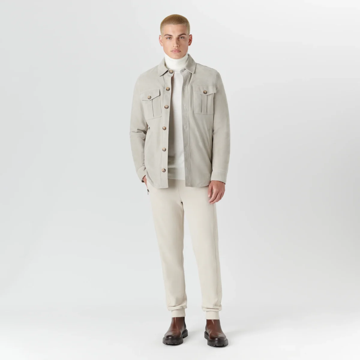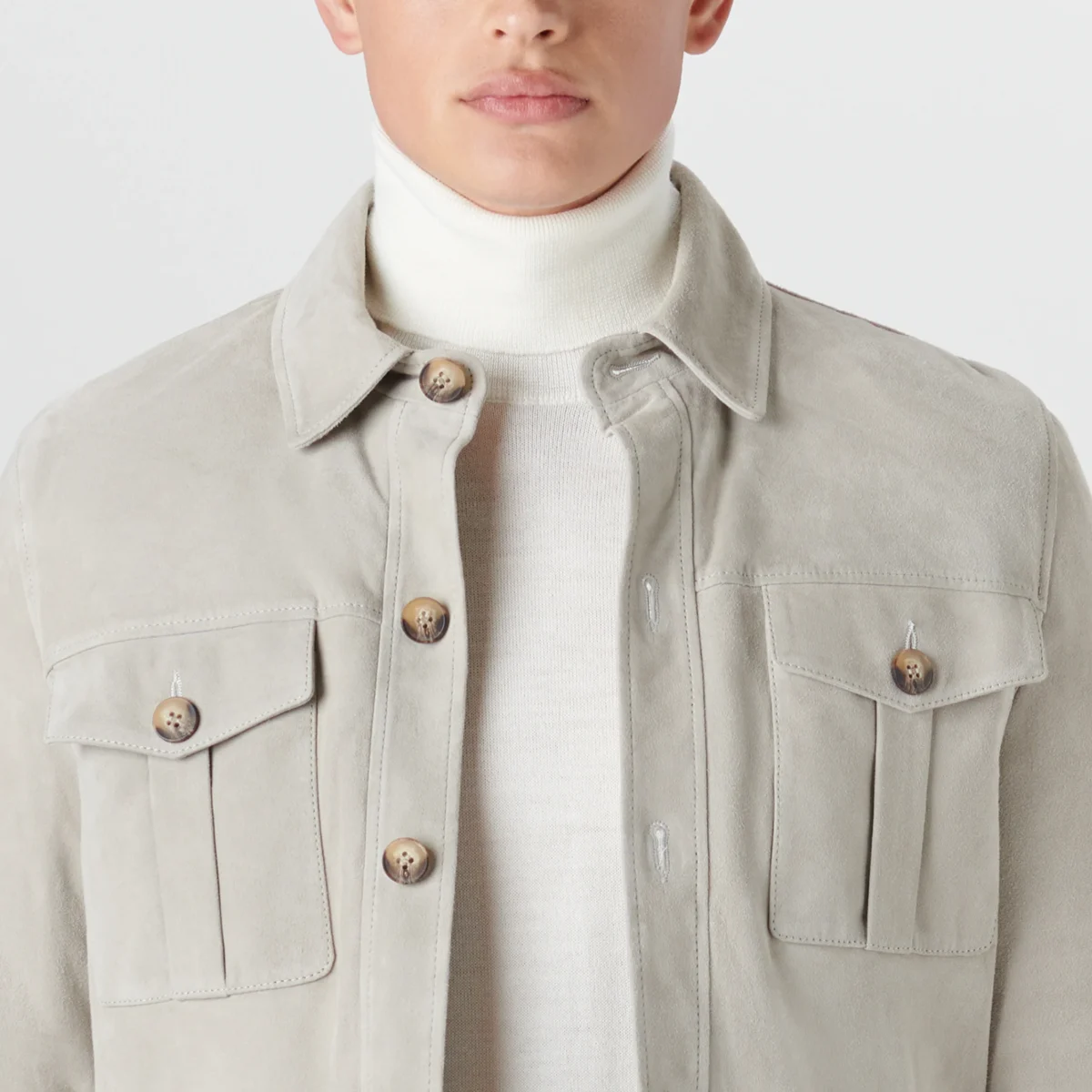 Men’s Beige Suede Shirt Jacket – Button-Up Suede Overshirt