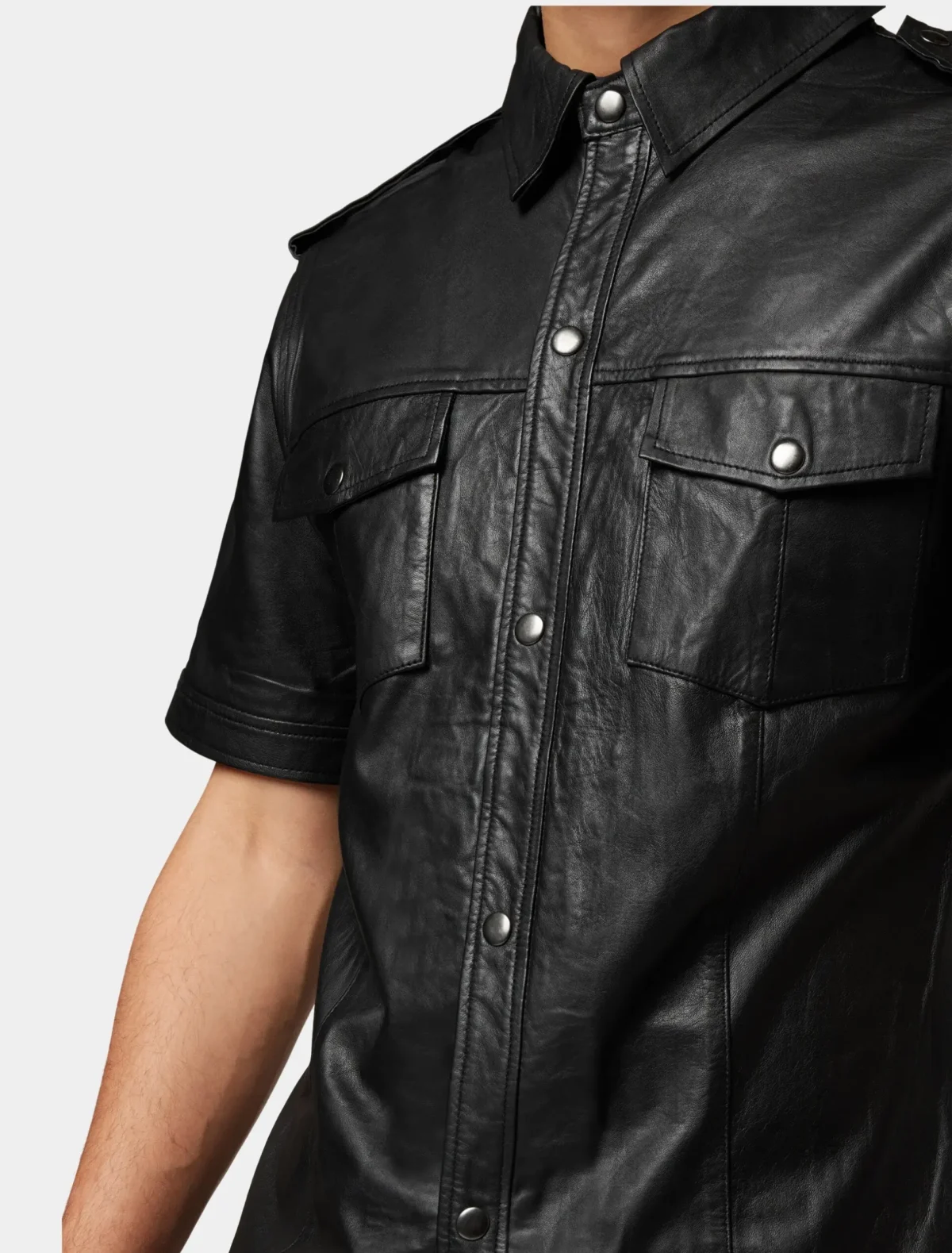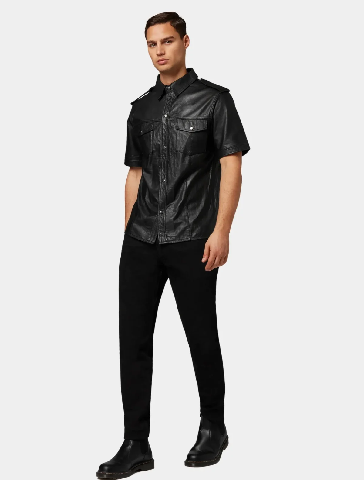 Style Overview Men’s Classic Black Leather Short Sleeve Shirt