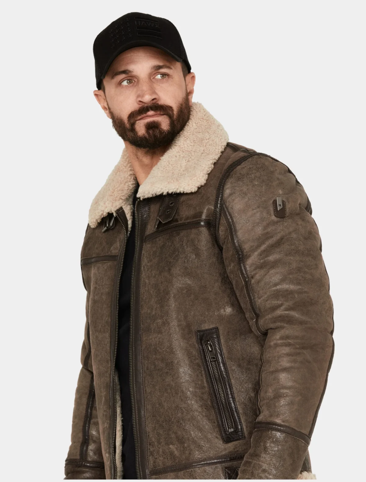 Thick shearling collar for warmth & classic aviator style