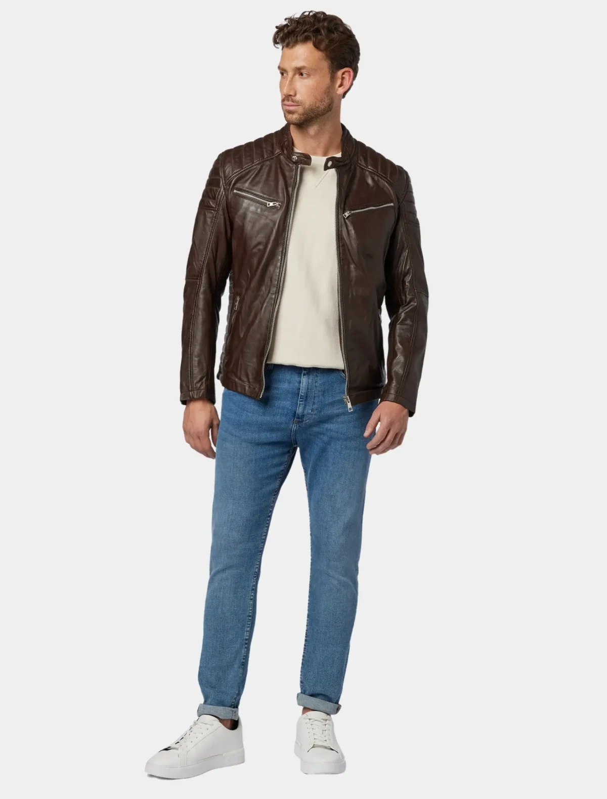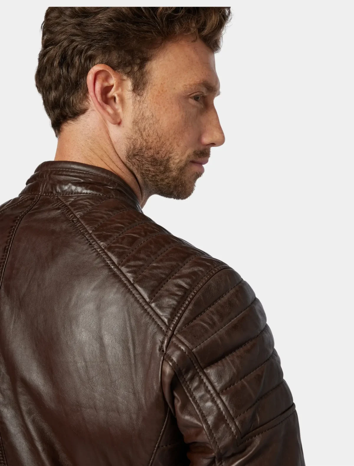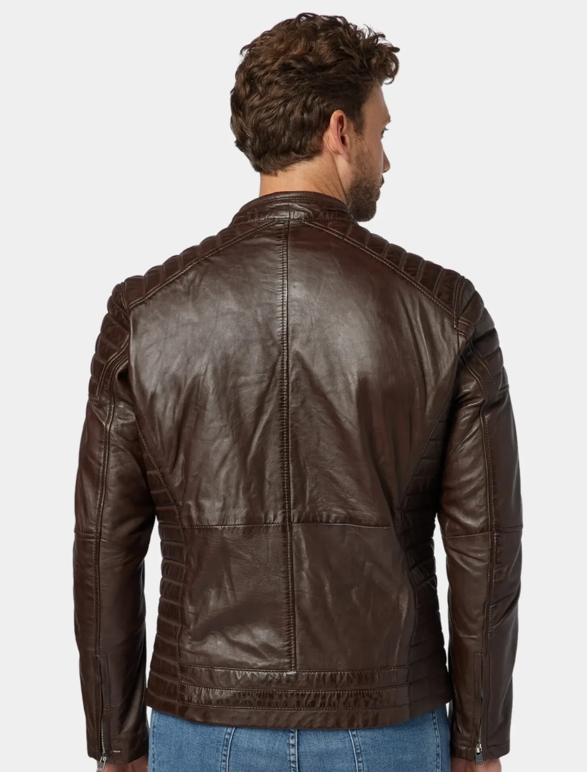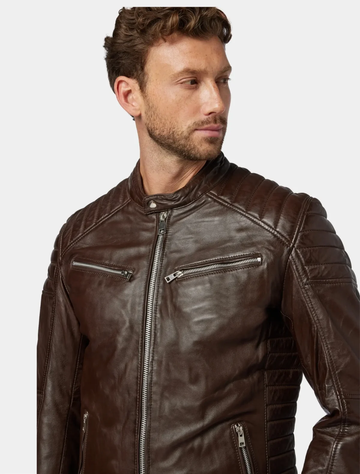 Jacket in Detail: Men’s Classic Dark Brown Leather Cafe Racer Jacket