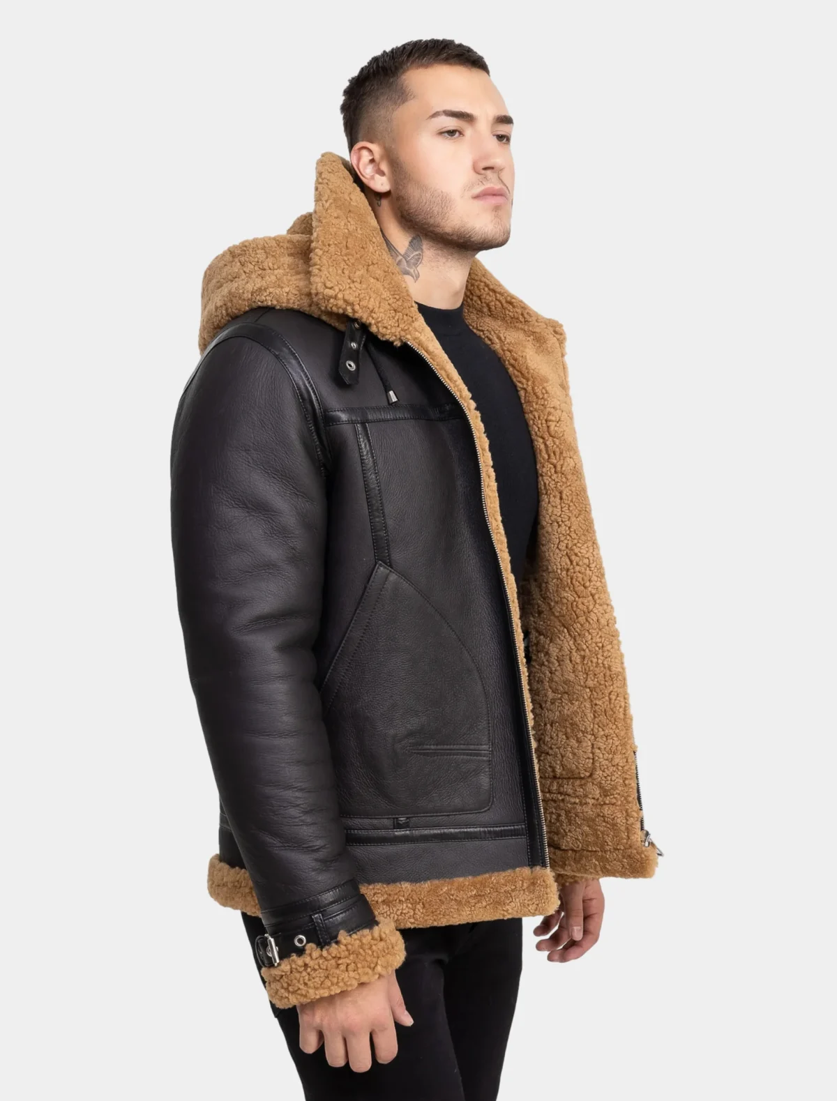 Complete Breakdown: Men’s Classy Brown Leather Shearling Hooded Aviator Jacket
