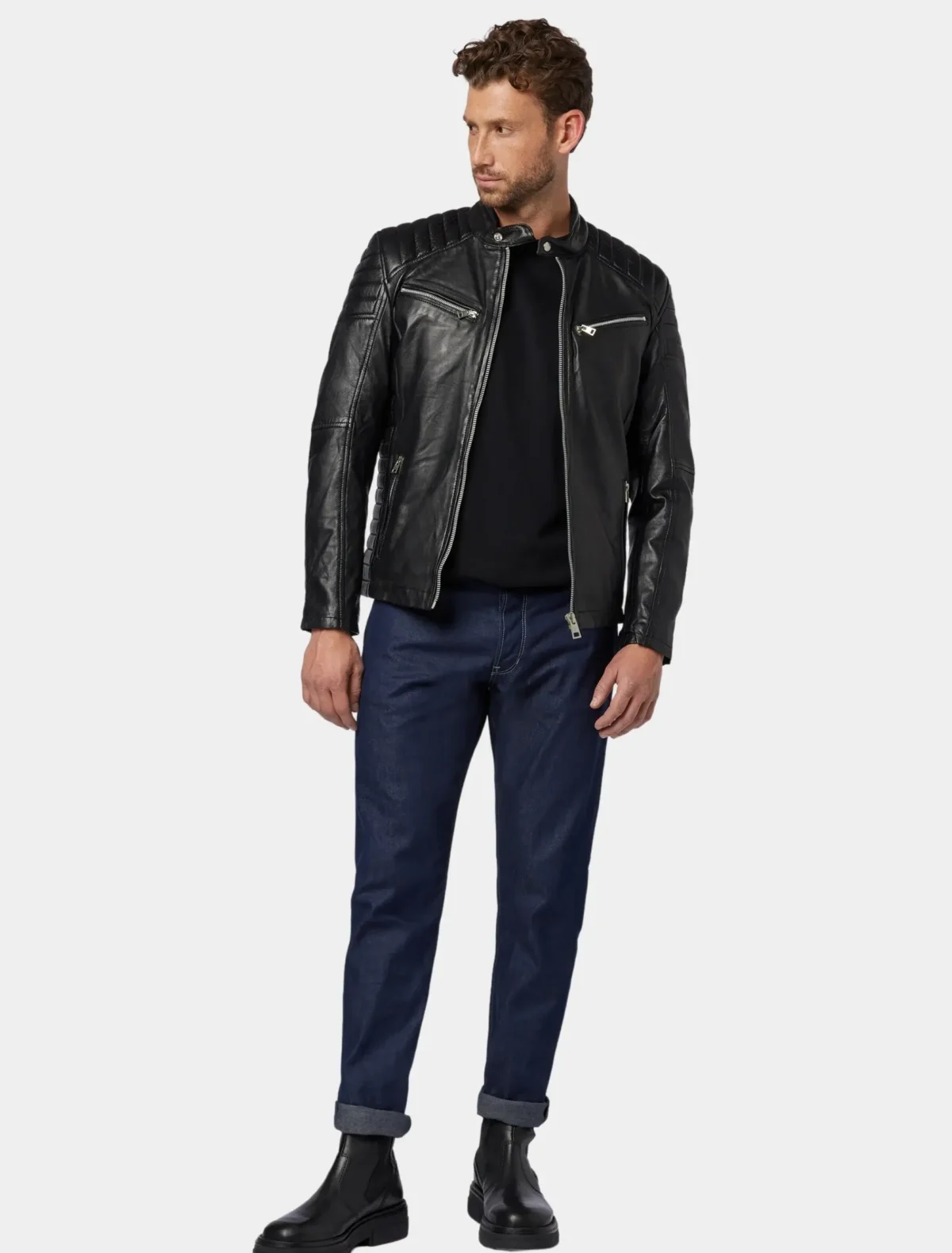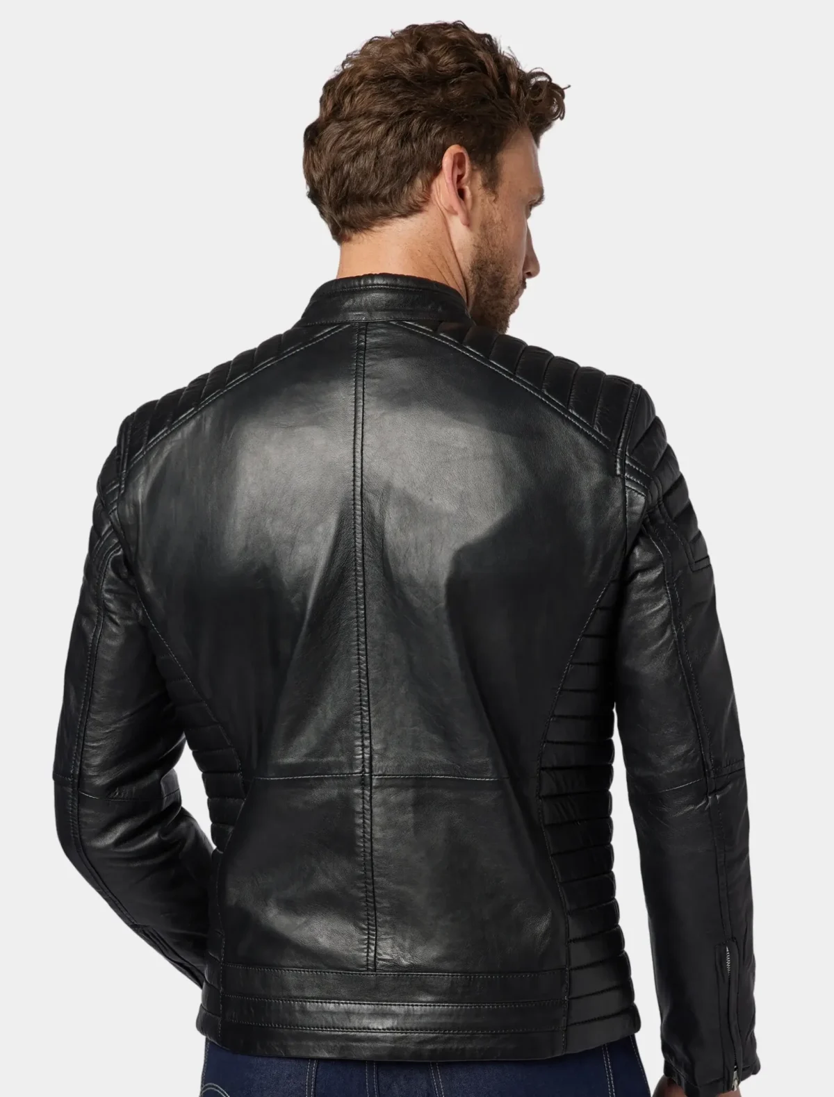 The Men’s Black Quilted Café Racer Leather Jacket isn’t just a throw-on—it’s a statement. Its form-fitting silhouette and sleek black finish make it a go-to for date nights, weekend rides, or casual Fridays. It pairs easily with jeans, boots, or even tailored trousers for a high-low mix. It also aligns well with fashion-forward staples like the Men’s Black Quilted Leather Puffer Jacket, the sporty Men’s Black Lightweight Quilted Puffer Jacket, and the timeless Men’s Classic Dark Brown Leather Cafe Racer Jacket or Men’s Classic Charcoal Gray Leather Cafe Racer Jacket.