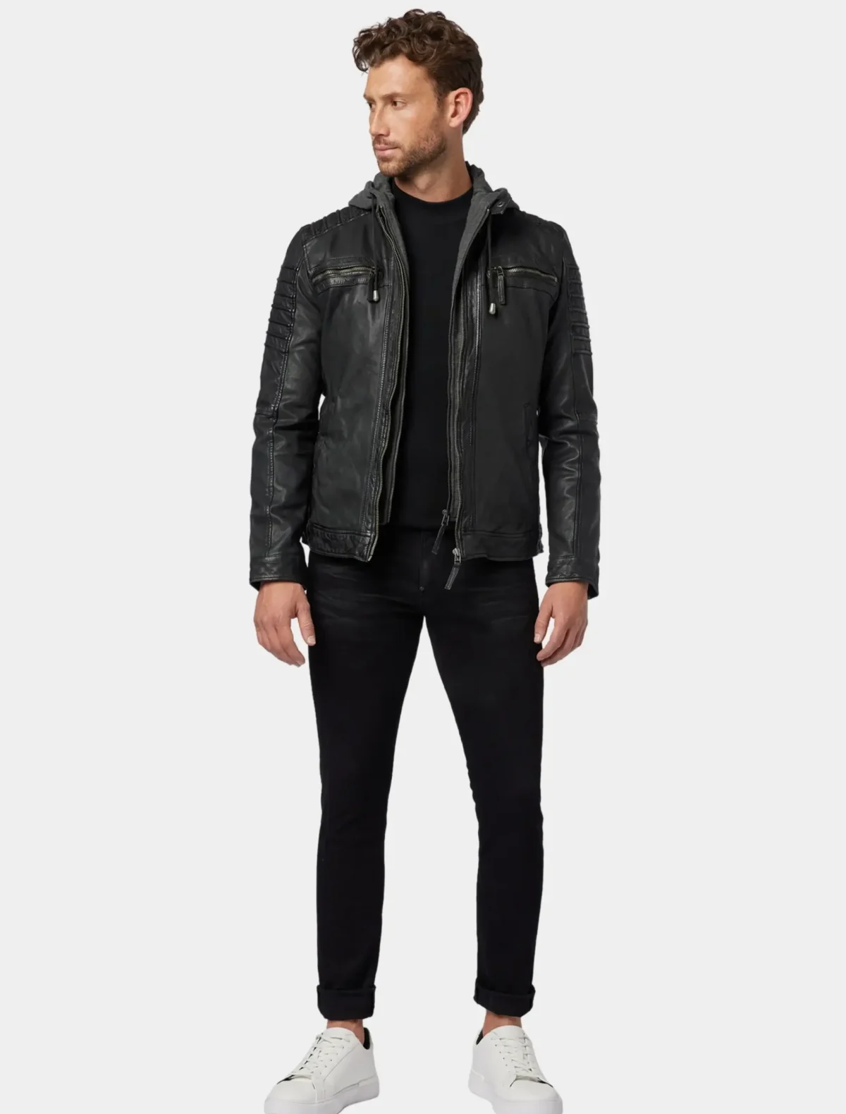 Style Overview: Men’s Black Leather Hooded Cafe Racer Jacket