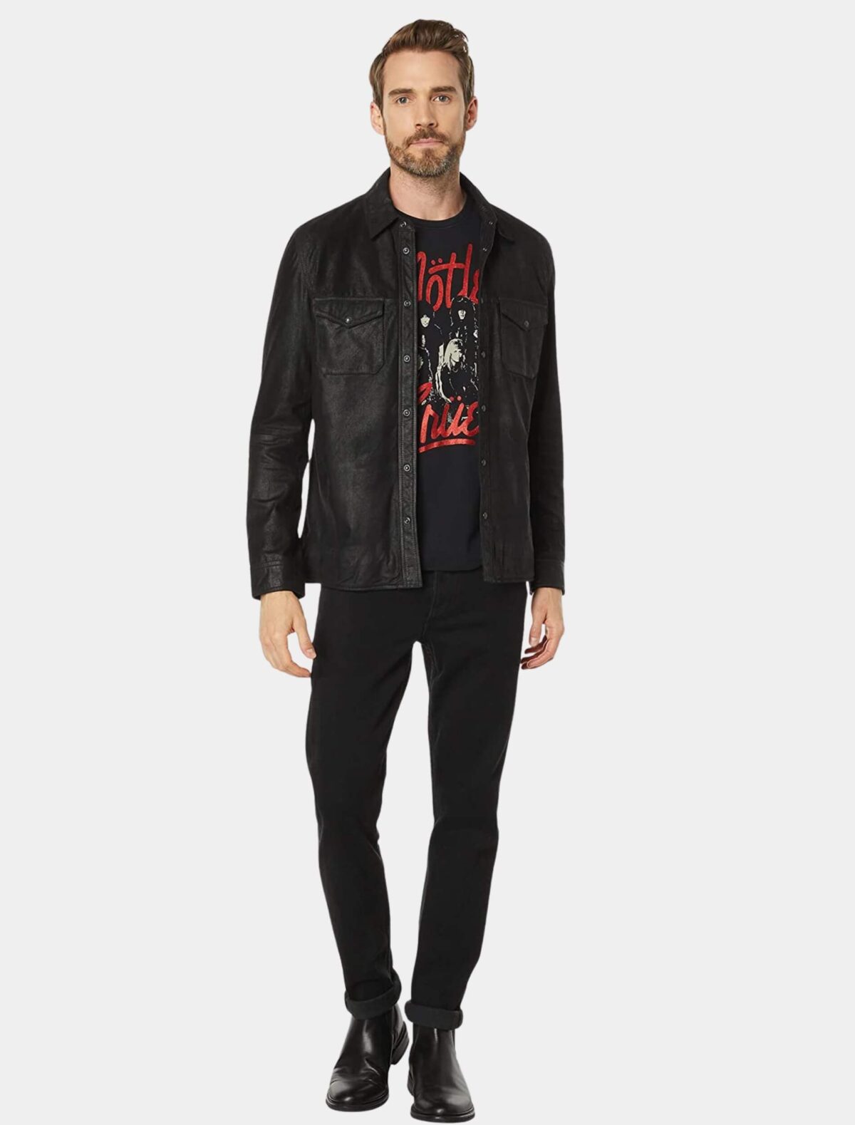 All the Details: John Varvatos Lionel Men’s Slim Fit Black Leather Shirt Jacket